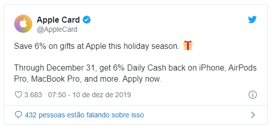 Saiba maisE mais: donos do cartão receberão 6% de cashback em compras de produtos da Apple até o fim do ano